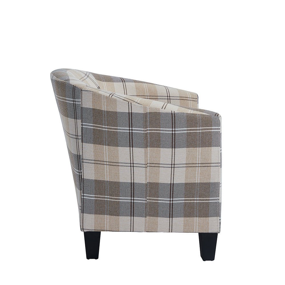 Canberra Accent Tub Chair, Beige Tartan Fabric