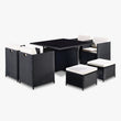 Cube Rattan Garden Furniture 9 Piece Set with Free Cover Included, Black