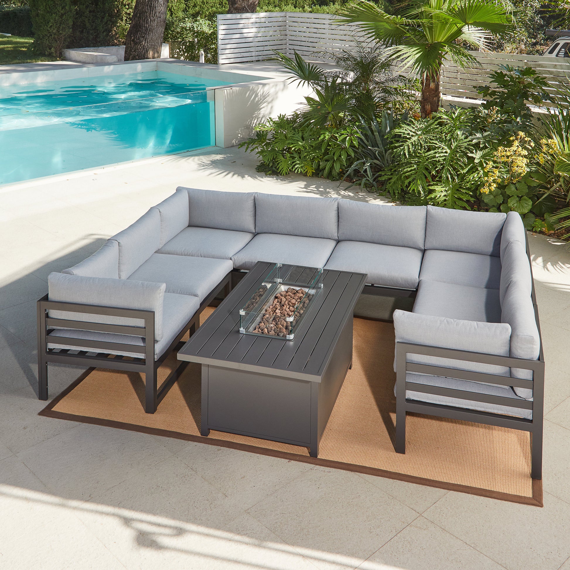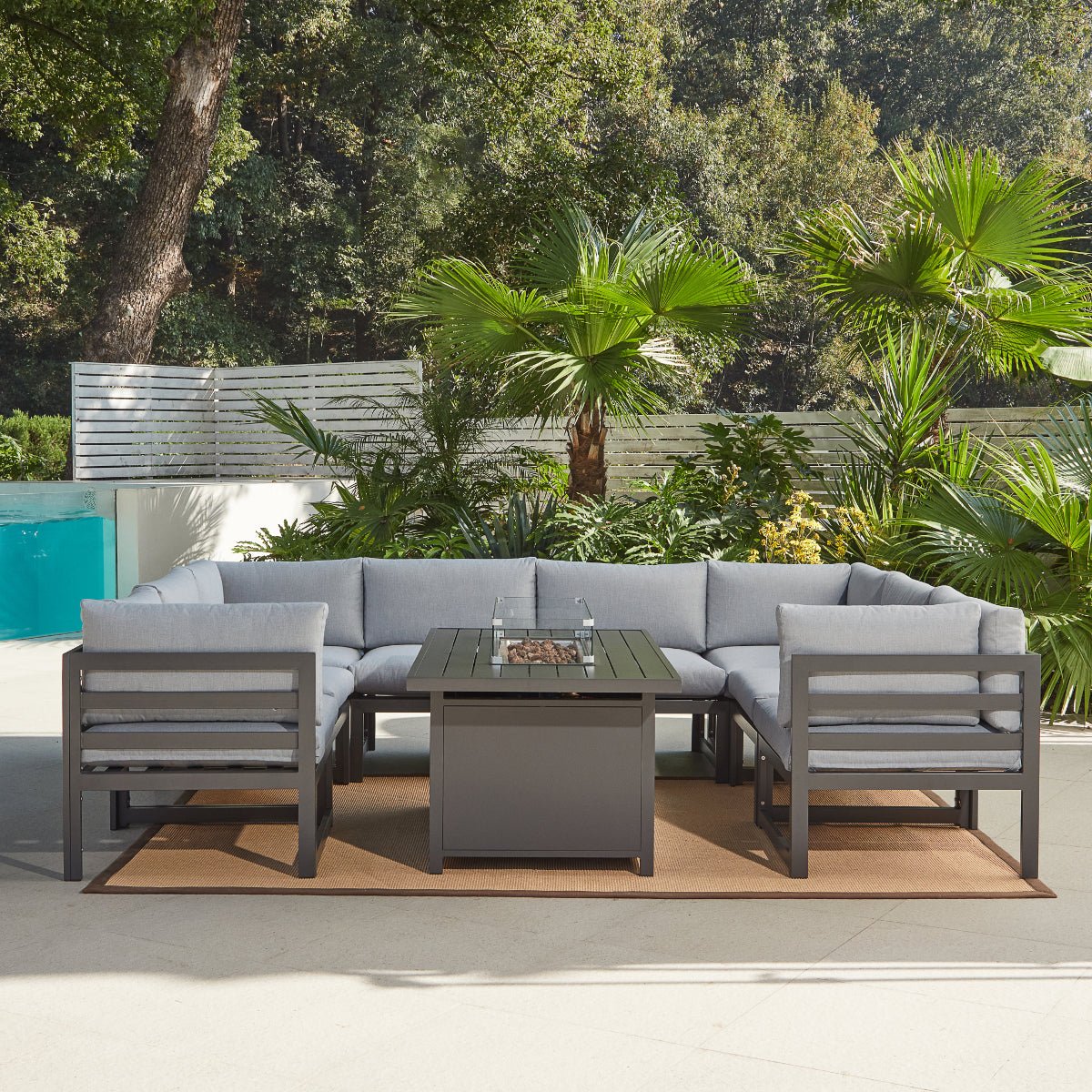 Faro Luxury Modular Garden Furniture Set with Fire Pit Table, Grey