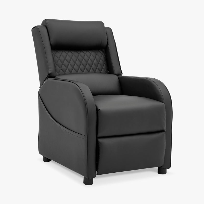 Gaming Racer Recliner Ergonomic Leather Computer Chair Cinema Armchair, Black with Black Trim