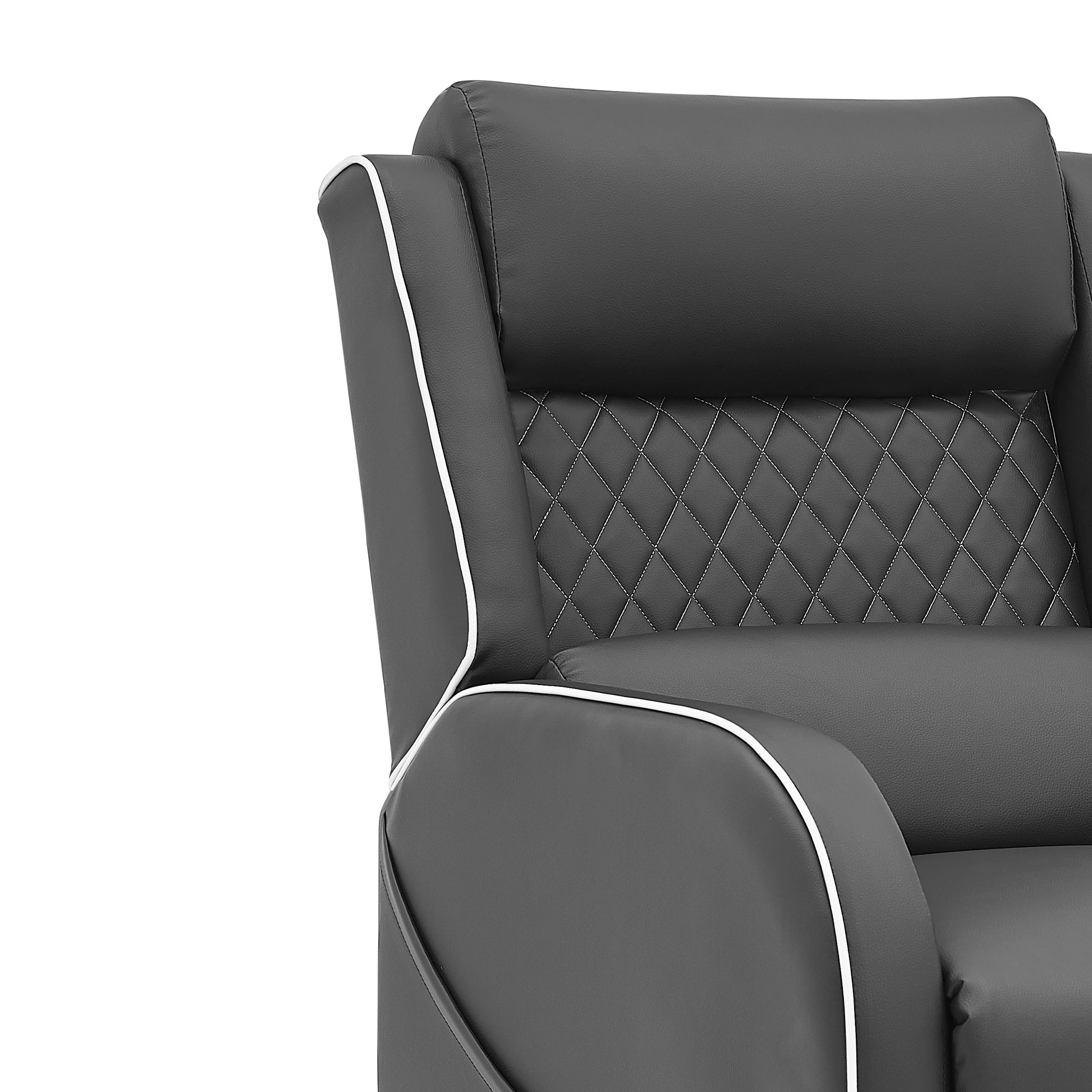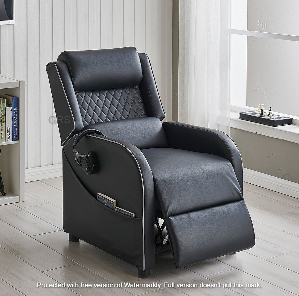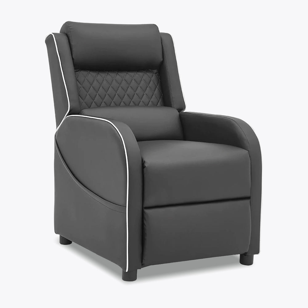 Gaming Racer Recliner Ergonomic Leather Computer Chair Cinema Armchair, Black with Grey Trim