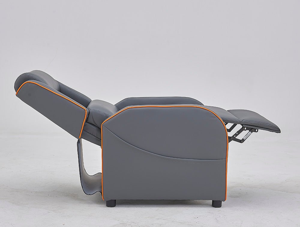 Gaming Racer Recliner Ergonomic Leather Computer Chair Cinema Armchair, Grey with Orange Trim