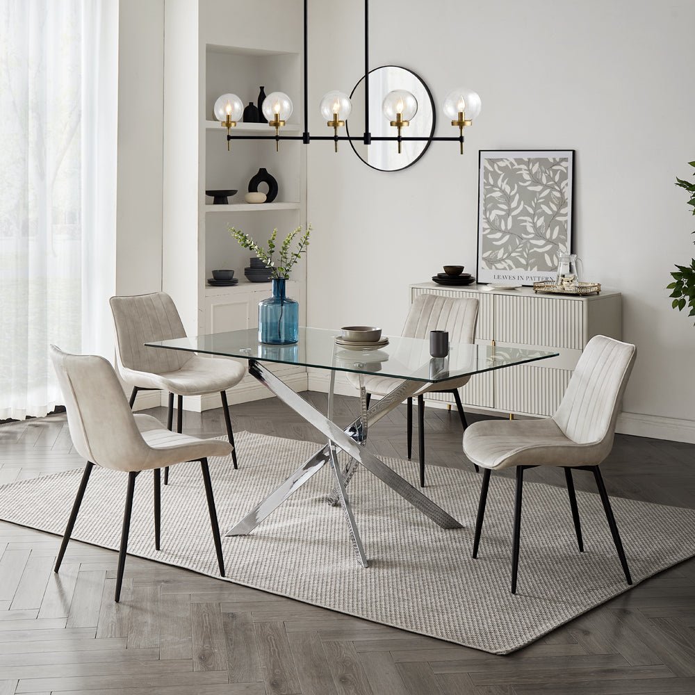 Now, onto the fun part - choosing your colours! Choose from grey, cream or blue velvet fabric OR brown or grey faux leather! Pick the Girona for stunning chairs that seamlessly blend in with any home trend, but also is designed to make you go WOW. Paired beautifully with black steel legs - what more can you want from your dining chairs?