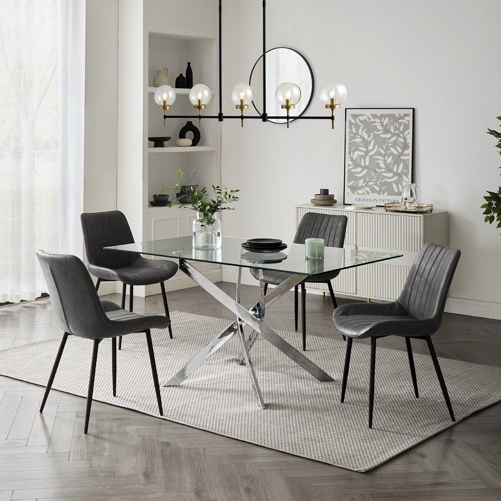 Girona Dining Chair Set of 2, Grey Faux Leather