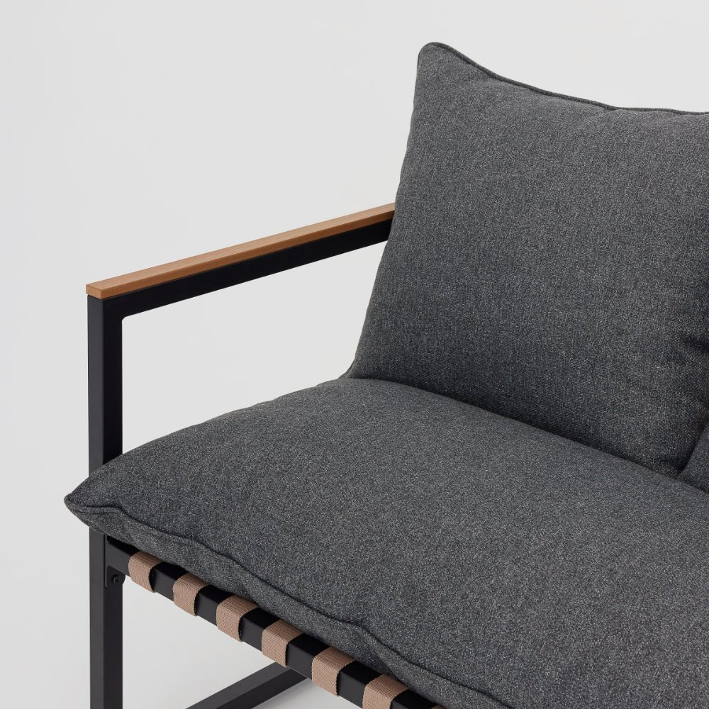 Not only is the Marbella garden furniture range stylish and chic, it is also very comfortable comfortable with its seat and back chair cushions. The black metal steel frame beautifully contrasts against the brown straps and polywood armrests. Finished with either a dark grey cushion or ivory cushion, whatever suits your style! The neutral colour palette we have selected is versatile, allowing you to style your garden your way.